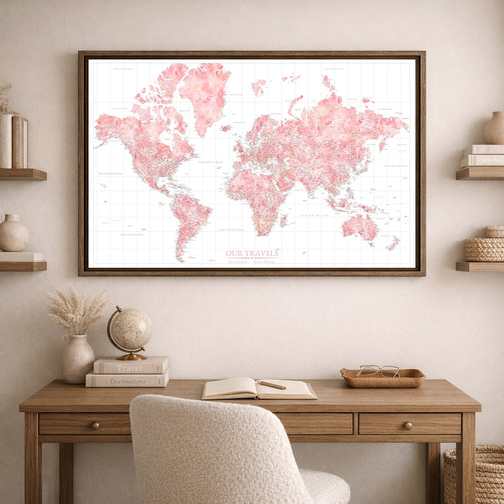Blush Horizon World Push Pin Map